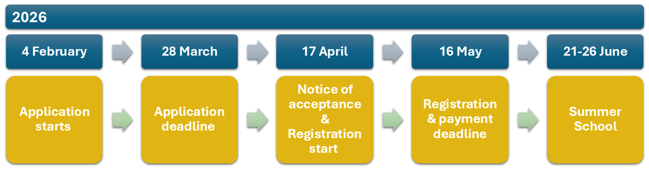 After notification of acceptance, the accepted applicants must register and pay the participation fee before the registration & payment deadline. The registration link will be sent by mail to all successful applicants.